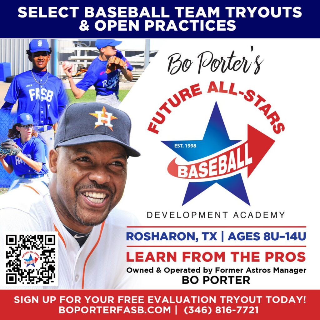 We are excited to announce the Bo Porter’s Future All-Stars Baseball Development Academy Select Baseball Evaluation Tryouts for the Spring 2026 Season. New teams forming for youth ages 8U-14U. Scroll down ⬇️ to register today.